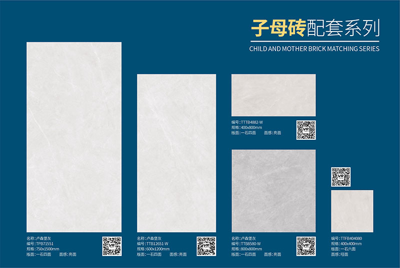 子母配套:TPB71551(750x1500mm)、TTB12651-W(600x1200mm)、TTB8580-W(800x800mm)、TFB404082(400x400mm)